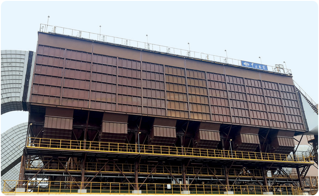 中冶環(huán)保以高效脈沖清灰技術、流場均布技術和箱體優(yōu)化技術為核心,濾袋最長可達9米,實現(xiàn)節(jié)省能耗30%,節(jié)省占地面積30%~40%,節(jié)省投資15%以上,排放濃度低于5mg/m3,滿足鋼鐵企業(yè)粉塵超低排放標準。