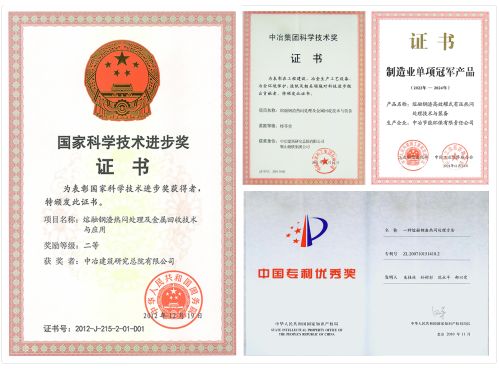 中冶環保自1992年率先開展鋼渣熱悶處理工藝技術研究,從400℃塊狀鋼渣綜合熱悶處理方法開始、歷經800℃熱態鋼渣熱悶、1650℃熔融鋼渣熱悶、鋼渣輥壓破碎-余熱有壓熱悶四代創新研究,最終實現了鋼渣處理技術"質"的突破,榮獲國家科學技術進步獎二等獎、中國專利獎優秀獎、中冶集團科學技術獎特等獎等多項獎勵。