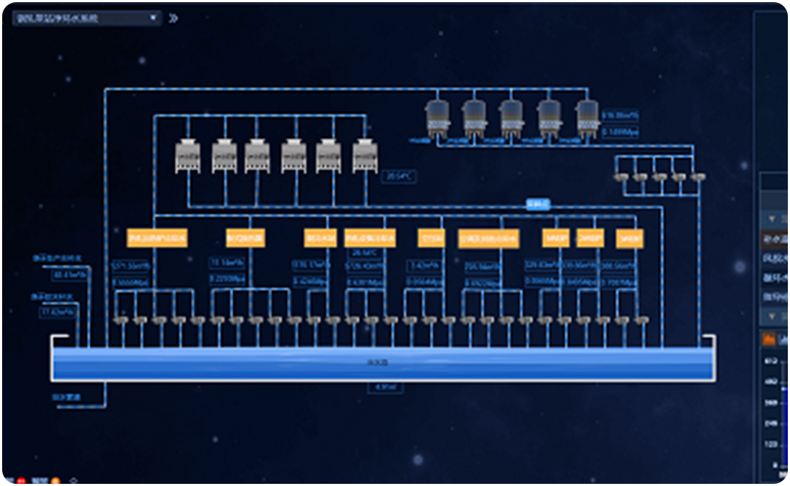 中冶環保具有自主知識產權的鋼鐵聯合企業全過程節水減排專家管理系統智慧平臺涵蓋全流程生產鏈條,具備水系統實時監控、水處理運行分析及管理、環保管理、水系統實時平衡及優化協調、水系統業績分析及統計等功能,從“監”“管”“控”三個方面,按照集中信息管理、數據分析管理、控制調節優化三步驟將鋼鐵園區內全過程生命周期水的運行、日常運維、環保管理、數據統計以及廠區內調控做到自動化、智能化、互聯網化、大數據化,從而達到系統整體的節水減排。